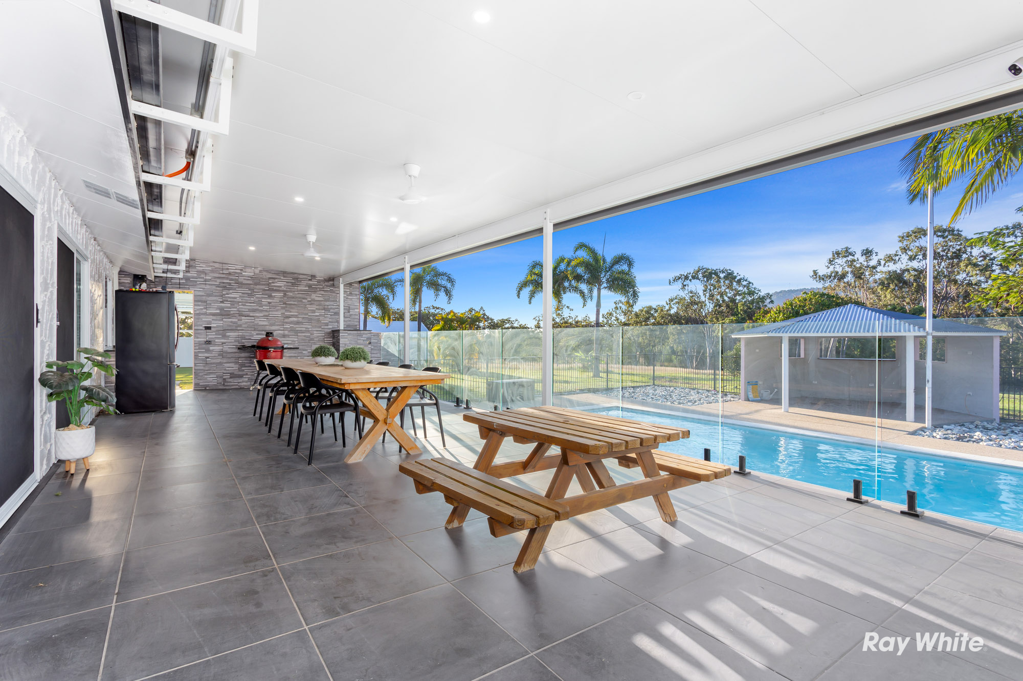 Property Highlights: • Freshly Renovated Home: All the hard work has been done-just move in and start enjoying your new lifestyle. • 5 Spacious Bedrooms: Plenty of room for the whole family, with 3 modern bathrooms to match. The 5th bedroom offers the perfect work-from-home opportunity with internal and external access through the gym. • Gourmet Kitchen: Featuring double ovens, a wine fridge, a large butler's pantry, a built-in bar cupboard, and a servery window opening to the entertaining area-perfect for hosting gatherings. • Large Open Plan Living: Expansive kitchen, dining, and living areas with high ceilings create a bright, airy, and welcoming space. Doors connect to both the front and back outside of the home, seamlessly blending indoor and outdoor living. • Massive Master Suite: Includes a walk-in robe, dressing space, ensuite, and doors that open directly to the outside, offering a private retreat. • European-Designed Exterior: Elegant archways and a sophisticated aesthetic make this home stand out. • 12x4 Metre Pool: Dive into your private paradise, with a large covered entertaining area & a pool hut featuring an outdoor bathroom. • 20x10 Massive Shed: Ideal for running a business from home, with plenty of room for a boat, caravan, cars, motorbikes and more! There's even a dedicated space perfect for a mancave. • Large Private Gym: Enjoy the convenience of a home gym with both internal and external access. • 13.3kW Solar System: Enjoy energy efficiency and savings year-round. • Room for Horses and More: With a dam and ample space, there's plenty of room for the kids to ride their dirt bikes or to keep some animals if you wish. • Rail Trail Access: Perfect for biking, walking, or a quick golf buggy ride to Yeppoon Golf Course.